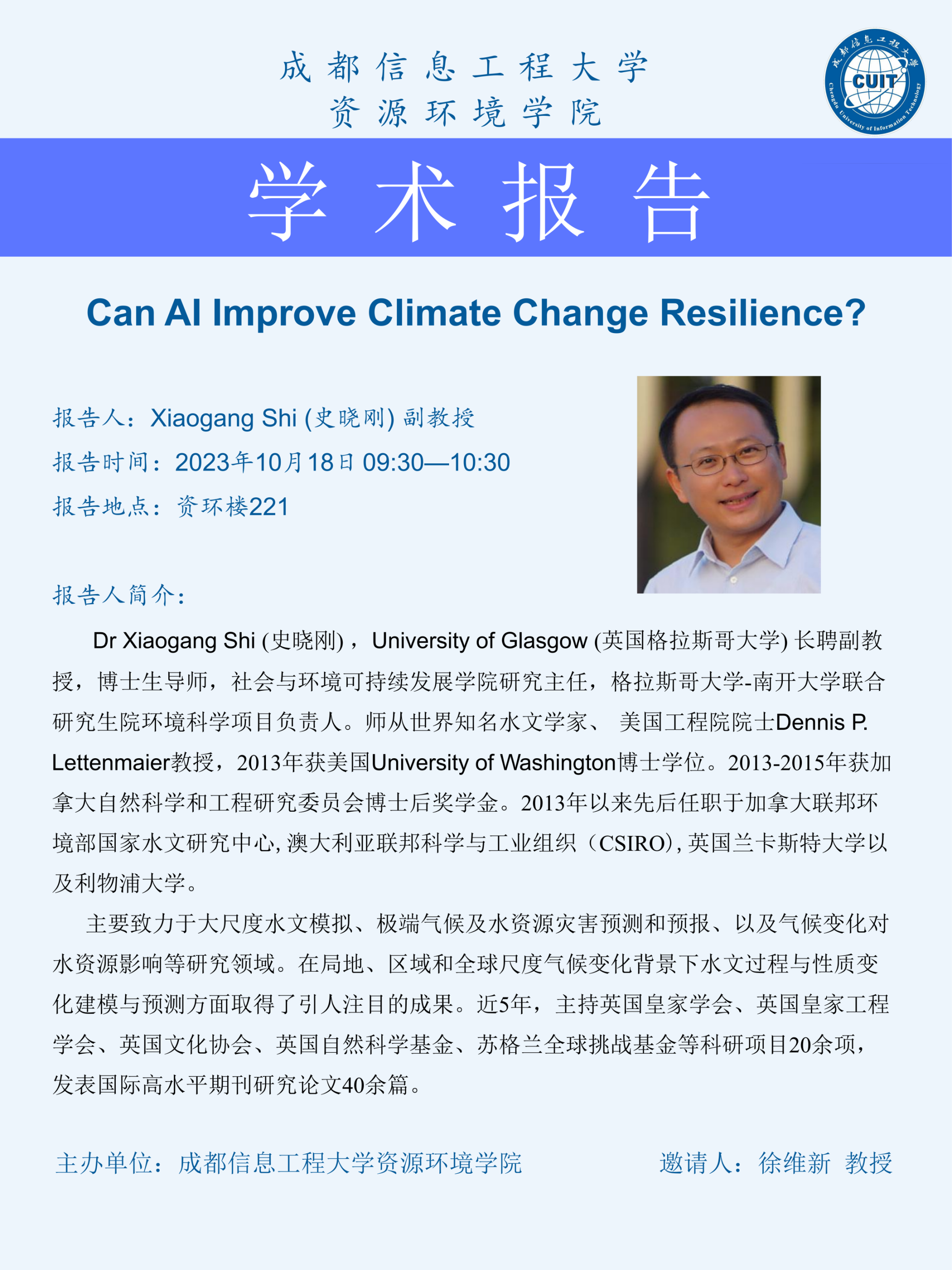 学术预告--Can AI Improve Climate Change Resilience?