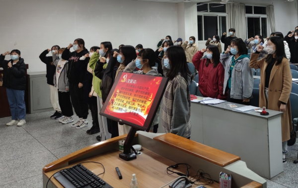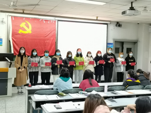 经支部大会充分讨论,结合党员发展对象的表现情况,与会正式党员以举手投票的方式进行表决,最终确定江慧玲、刘颖等十名同志发展为预备党员。发展大会结束后,与会成员随着领誓人江帆同志在党旗下宣誓。
