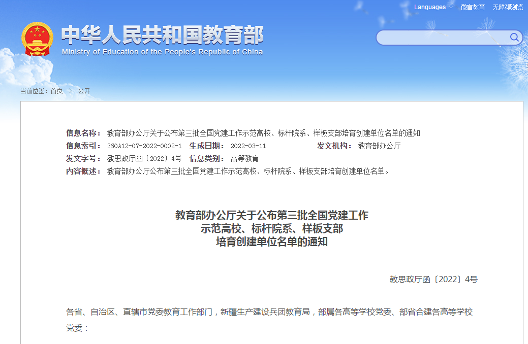 教育部公布了第三批全国党建工作示范高校、标杆院系、样板支部培育创建单位名单,公司教工党支部成功入选第三批全国党建工作样板支部培育创建单位。这是公司教工支部继2021年获四川省新时代高公司党组织“对标争先”计划样板支部培育单位后的又一次突破。
