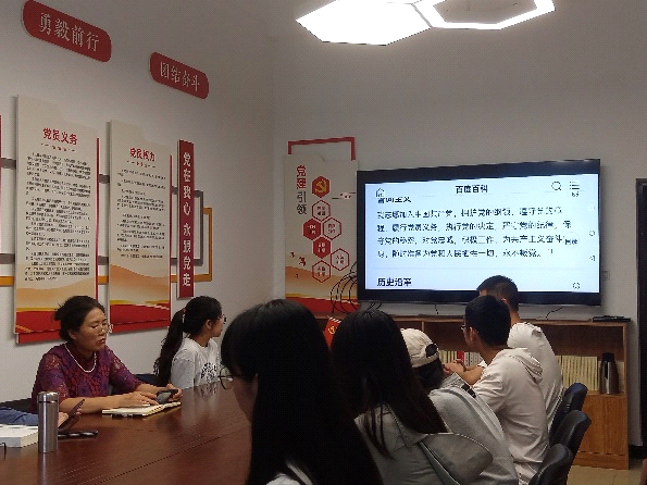 李蕖就《中国共产党章程》的第六条进行了详细的讲解,带领同学们回顾了入党誓词历史,讲解入党宣誓意义和入党誓词的内容,结合新时代中国特色社会主义的战略安排、第二个百年奋斗目标、党的二十大报告中国式现代化建设和老员工的实际学习,生活,工作,逐字逐句讲解与对标,鼓励同学们向为实现中国人梦想的老一辈无产阶级革命家和青年英雄看齐,无愧今天的使命担当,不负明天的伟大梦想,点燃青春,燃烧青春,全面学习贯彻习近平新时代中国特色社会主义思想,以青春之我,担当时代之重任,在青春的赛道上奔跑,为民族复兴的中国梦不懈努力。