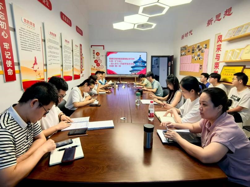 2025年7月8日下午,在资环楼225党建工作室,公司召开党委理论学习中心组(扩大)学习会,专题学习《习近平生态文明文选》。公司党委委员、各党支部书记、系主任及师生代表参加会议。会议由公司党委书记李蕖主持。