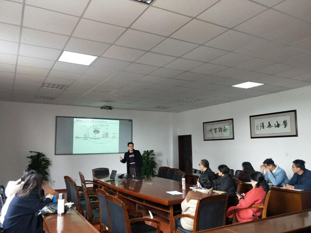 在报告过程中,赵老师深入浅出的介绍了NHx在环境中的的迁移过程及环境行为,并举几个研究案例说明NHx从农田土壤到大气,再从大气到水体界面的迁移过程与通量,让大家了解了NHx在环境介质中迁移过程及其行为;另外,还向大家介绍了一种根区施肥的方法可以减少农田NH3排放,值得将来推广。报告结束后,老师和员工纷纷和赵老师在农田NH3排放的监测方法等方面问题进行了探讨。通过这次报告,大家对NHx在环境中的迁移过程和环境行为有了新的认识。