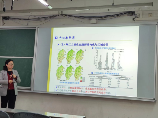 讲座中,冯文兰老师娓娓道来,首先从岷江上游地理环境的研究案例讲起,描述出地理环境多种多样的情景,拓展了同学们对自然地理的认识。紧接着宏观地为同学们介绍了地理学的相关课程及培养目标,结合实际情况进行具有实际意义的讲解,并微观地具体地介绍了地理学研究方向以及与测绘学的联系,在讲解中冯文兰老师结合自身经历进行补充,充分加深了同学们对本门课程的了解,讲解内容涉及自然地理和人文地理等专业知识内容。