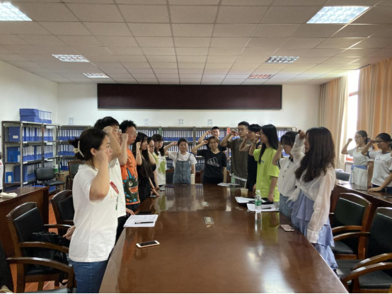 发展大会结束后,与会成员随着领誓人王书帆同志在党旗下宣誓。宣誓完毕后由支部书记杨镜霖老师结合支部现状,对支部大会进行总结,她强调党员同志要起到先锋模范作用,永葆共产党员的先进性。