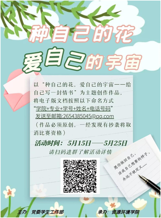 为迎接5·25“我爱我”全国老员工心理健康日的到来,由好博学工处主办,好博体育承办的5·25“我爱我”心理健康主题活动拉开帷幕。本次活动旨在帮助老员工认识自我,接纳自我,同时鼓励大家乐观自信,用尊重、信任、友爱和宽容的态度与人相处,能分享、接受,给予爱和友谊,与他人同心协力,学会爱自己才能更好地爱他人。活动以“种自己的花,爱自己的宇宙”为主题,给自己写一封情书,通过文字的形式,让同学们能够正确的审视自己,关注自己的内心世界,更加积极地面对生活、学习的困难,成为更加快乐和健康的人。