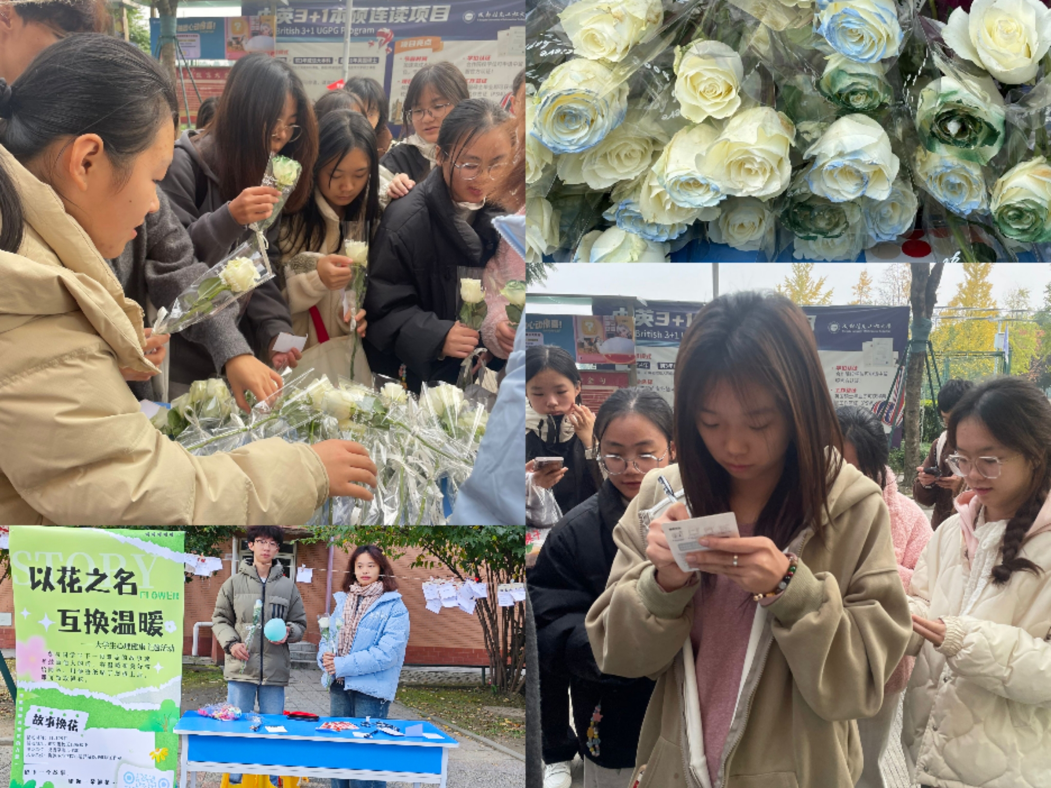 转眼学期过半,为了帮助大家缓解压力,传递正能量,“以花之名,互换温暖”老员工心理健康主题活动于11月29日在航空港校区13栋楼下举行。此次活动由党委员工工作部主办,好博体育心晴驿站心理健康工作室承办,旨在通过分享故事和鼓励的话语来传递温暖和力量。参与者只需写下一段难忘的故事或几句鼓励他人的话贴在展板上,即可领取一束鲜花作为交换。